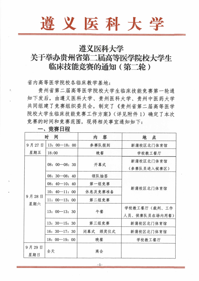 當前位置:首頁(yè)>科(kē)學(xué)教研>實習生管理(lǐ)【通知】遵義醫(yī)科(kē)大學(xué)關于舉辦(bàn)貴州省第二屆高等醫(yī)學(xué)院校大學(xué)生臨床技(jì )能(néng)競賽的通知(第二輪)