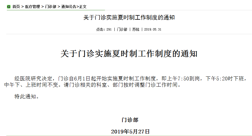 關于門診實施夏時制工(gōng)作(zuò)制度的通知
